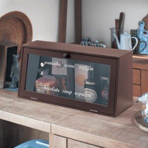 中身が見えるアクリルのフラップ扉でショーケース風にデザインしたブレッドケース。カウンター上などに置いて、反対側の引戸からも出し入れできて便利です。パンはもちろん、調味料などにも! カフェ風のインテリアが好きな方にぴったりです。